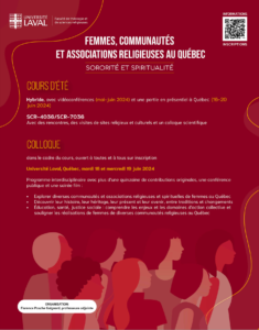 Entrevue (audio) accordée à Présence-Info, diffusée le 7 mars 2024, au sujet du cours (mai-juin 2024) et colloque (18-19 juin 2024) “Femmes, communautés et associations religieuses au Québec: spiritualité et sororité“